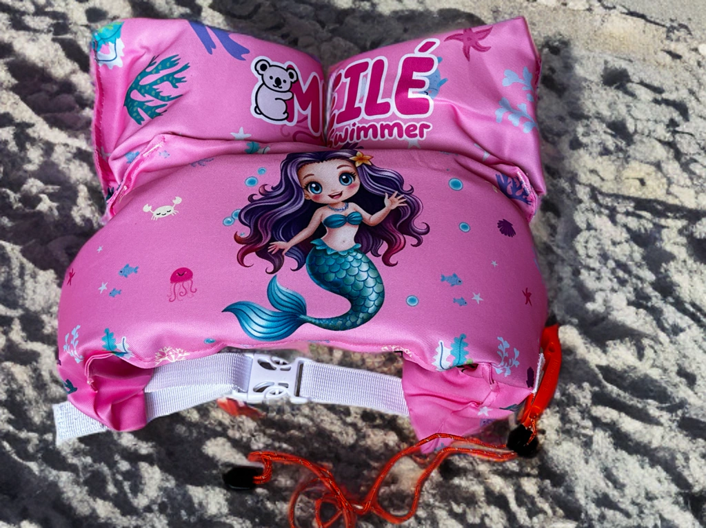 El diseño exclusivo y propio de Mermaid combina funcionalidad y estilo, pensado especialmente para proteger mientras permite la libertad de movimiento de los niños en el agua. Se abrocha cómodamente en la espalda para un ajuste seguro y fácil de poner y sacar.