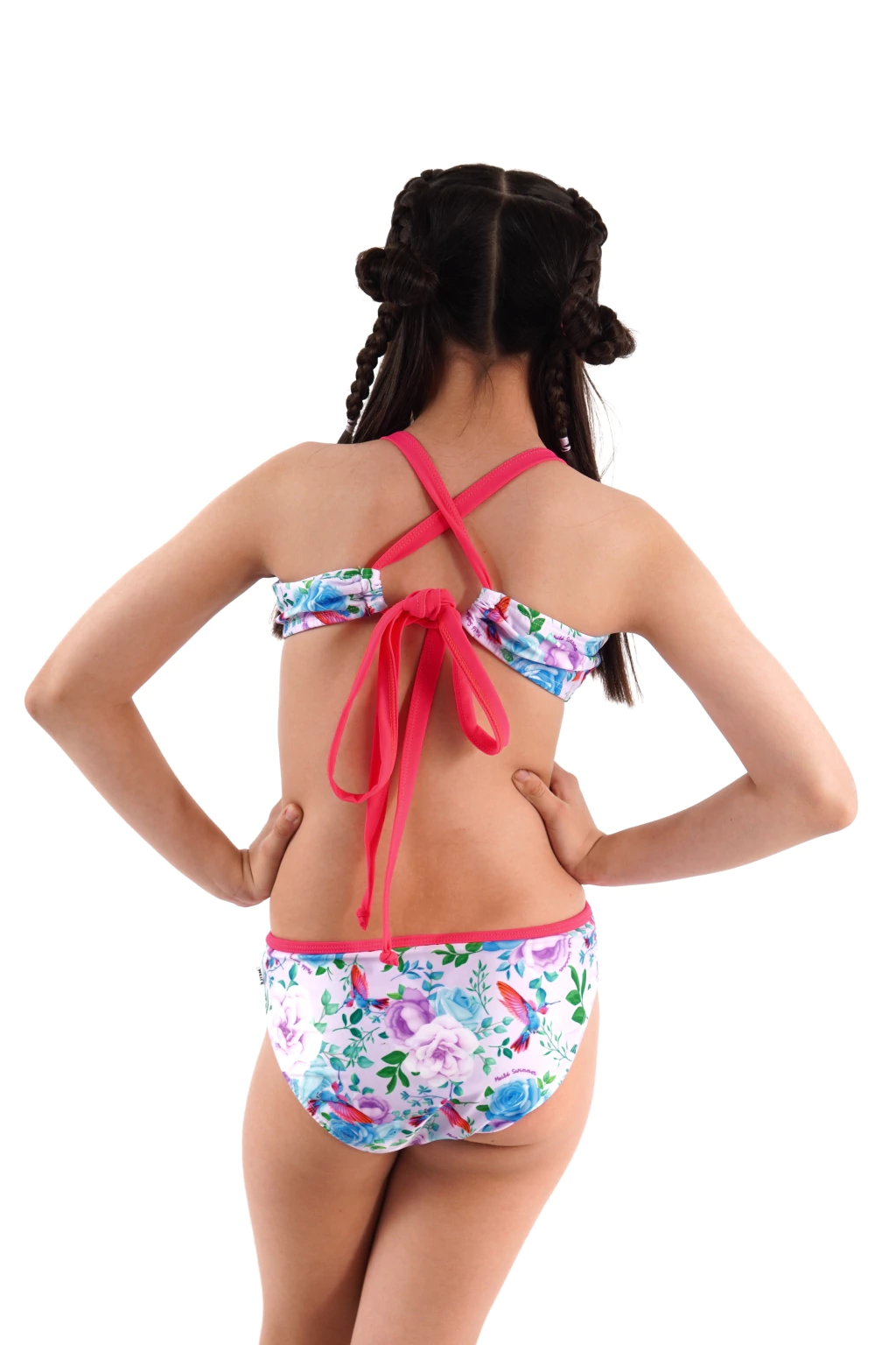 - Diseño: Este modelo posee top angosto con bretel ancho combinado, el cual cruza en espalda para ajustarse a cada cuerpo. Bombi envivada al tono