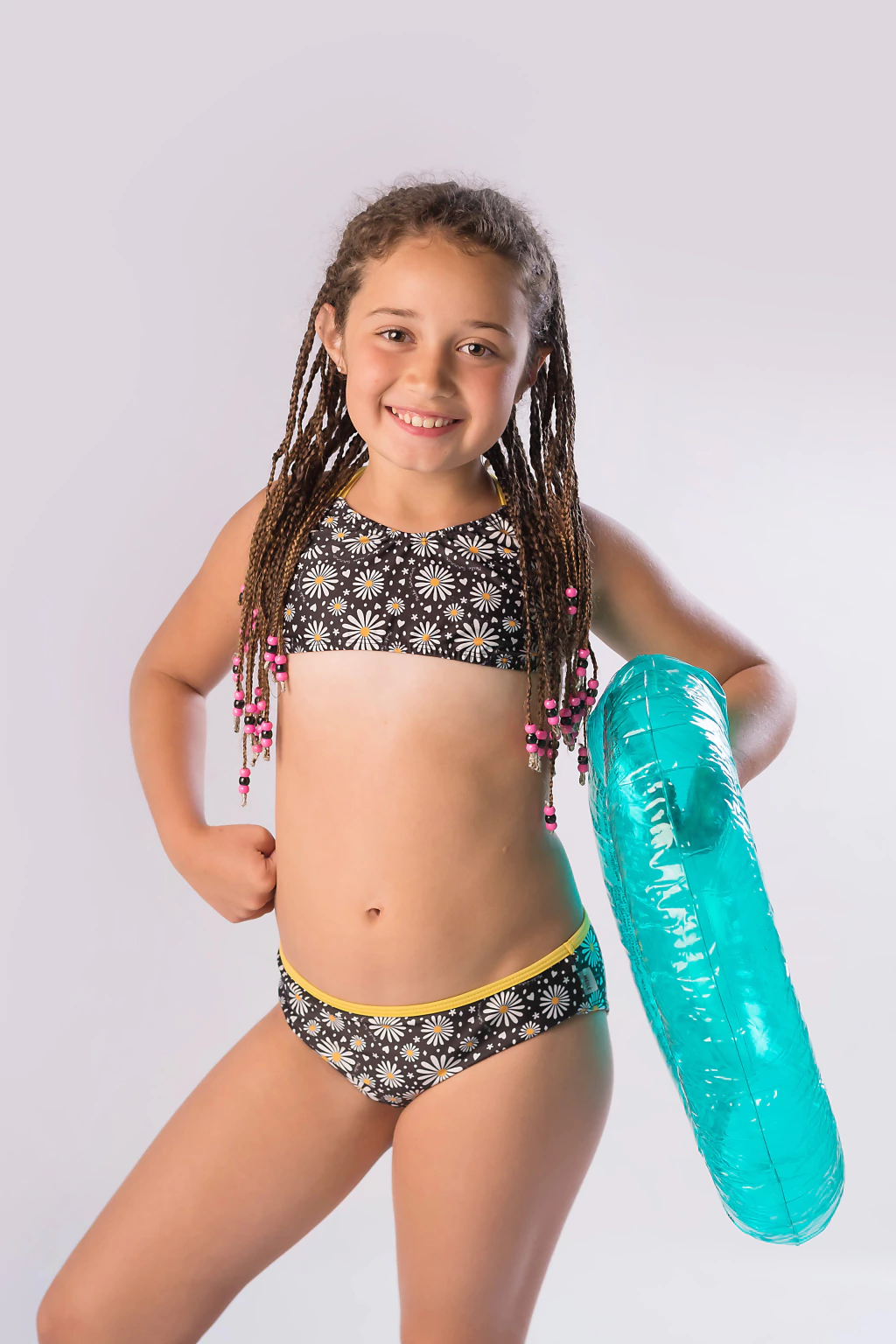 - Diseño: Este modelo posee top angosto con bretel ancho combinado, el cual cruza en espalda para ajustarse a cada cuerpo. Bombi envivada al tono